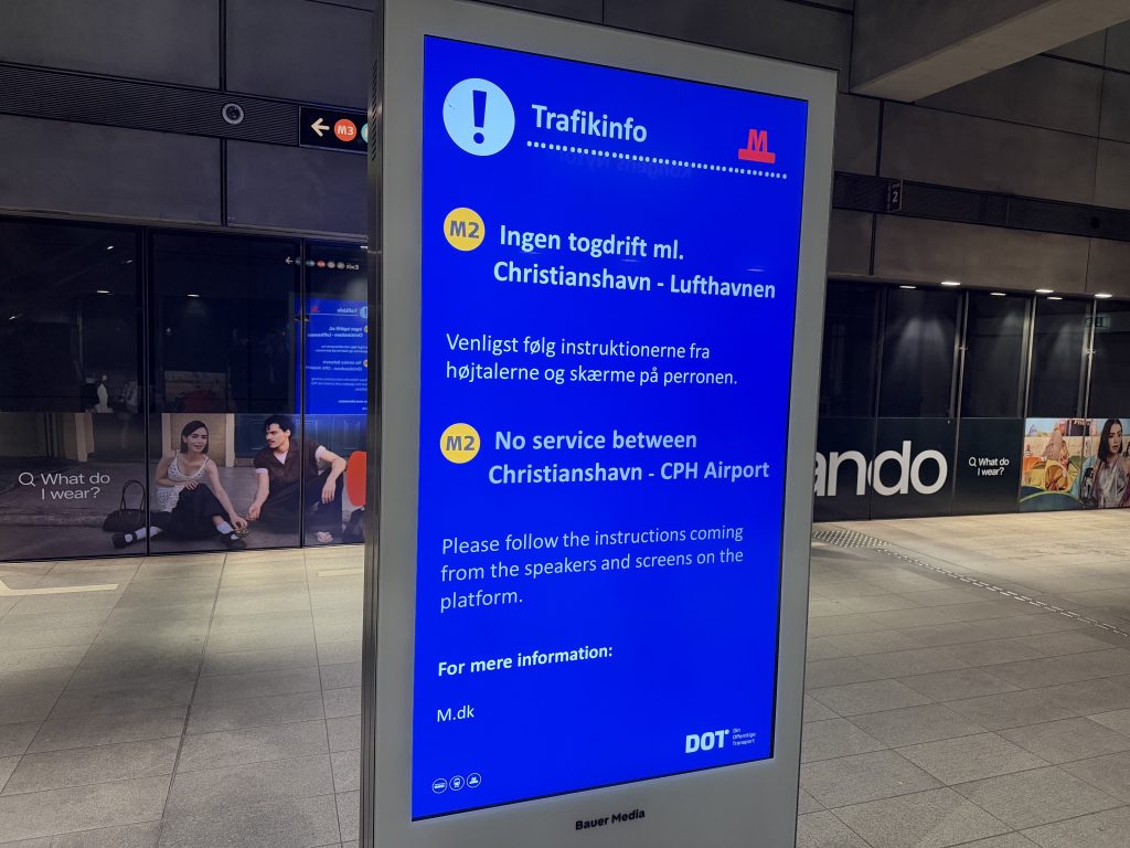 Natten til søndag fremgik det, at der ikke kørte nogen metro mellem Christianshavn og Lufthavnen.