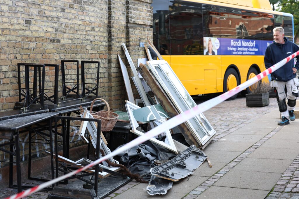 – De kan ikke flytte bussen, før bygningen er afstivet. Det er den umiddelbare vurdering, at facaden falder ned, hvis man bare fjerner den, siger vagtchef Henrik Stormer.