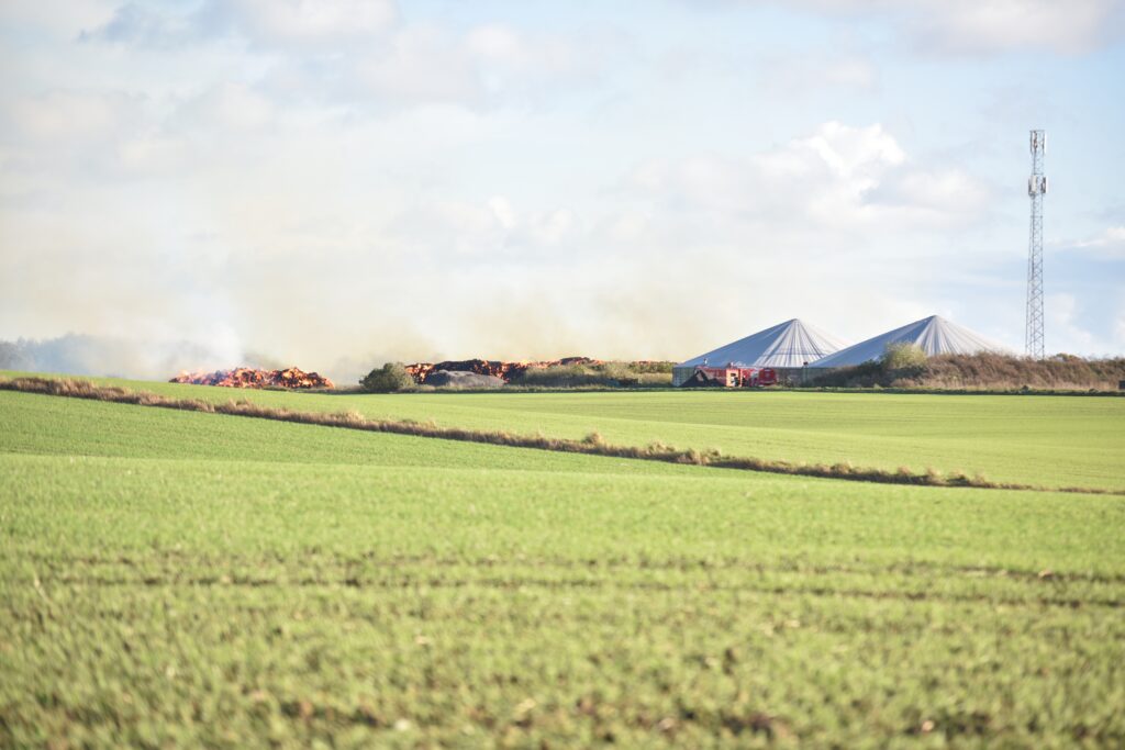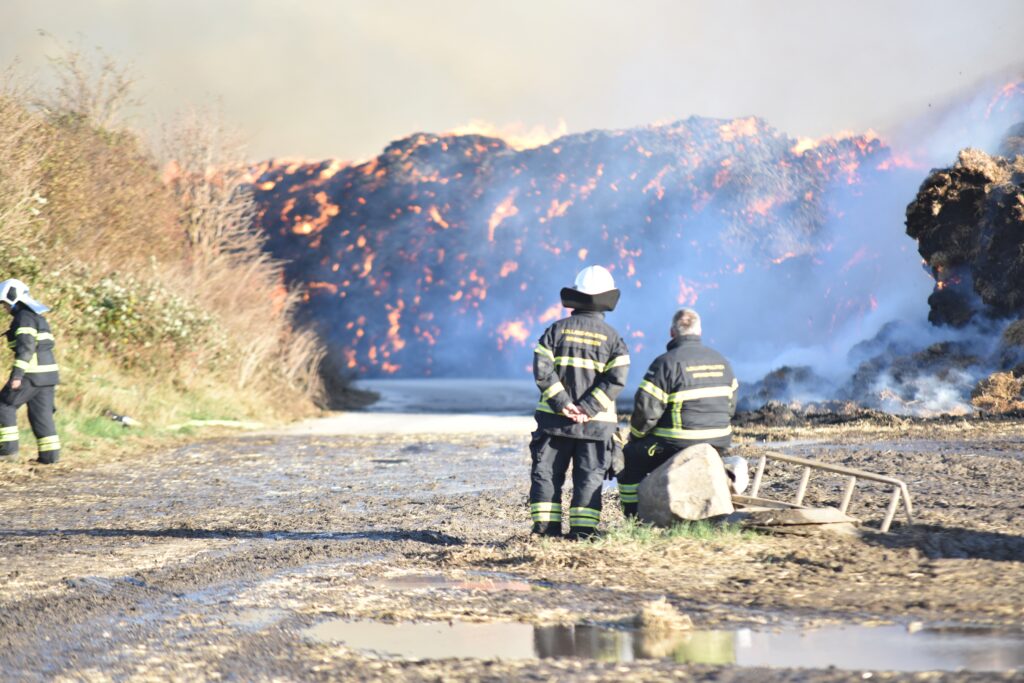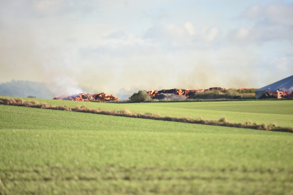 Indsatsleder Bo Løftstedt Andersen fortæller til avisen, at de mange halmballer er ikke meget mere end 50 meter fra selve landejendommen, hvor flere hundrede kvæg befinder sig.