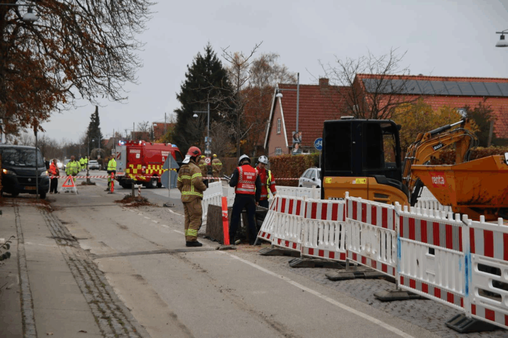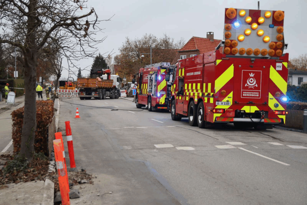 Her er beredskabet rykket ud efter meldinger om et gasledningsbrud.