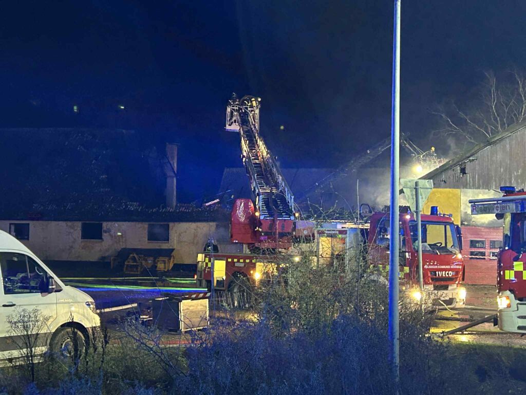 Branden opstod i en ejendom, hvor der er indrettet værksted og flammerne bredte sig hurtigt rundt i bygningen.
