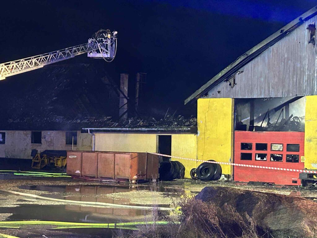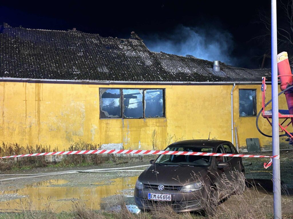 En kraftig brand hærgede natten til søndag en bygning på Hornbækvej ved Tikøb.