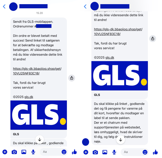 Her lyder det, at man skal tænke sig en ekstra gang om og kontakte GLS, hvis man er i tivivl om en beskeds ægthed.