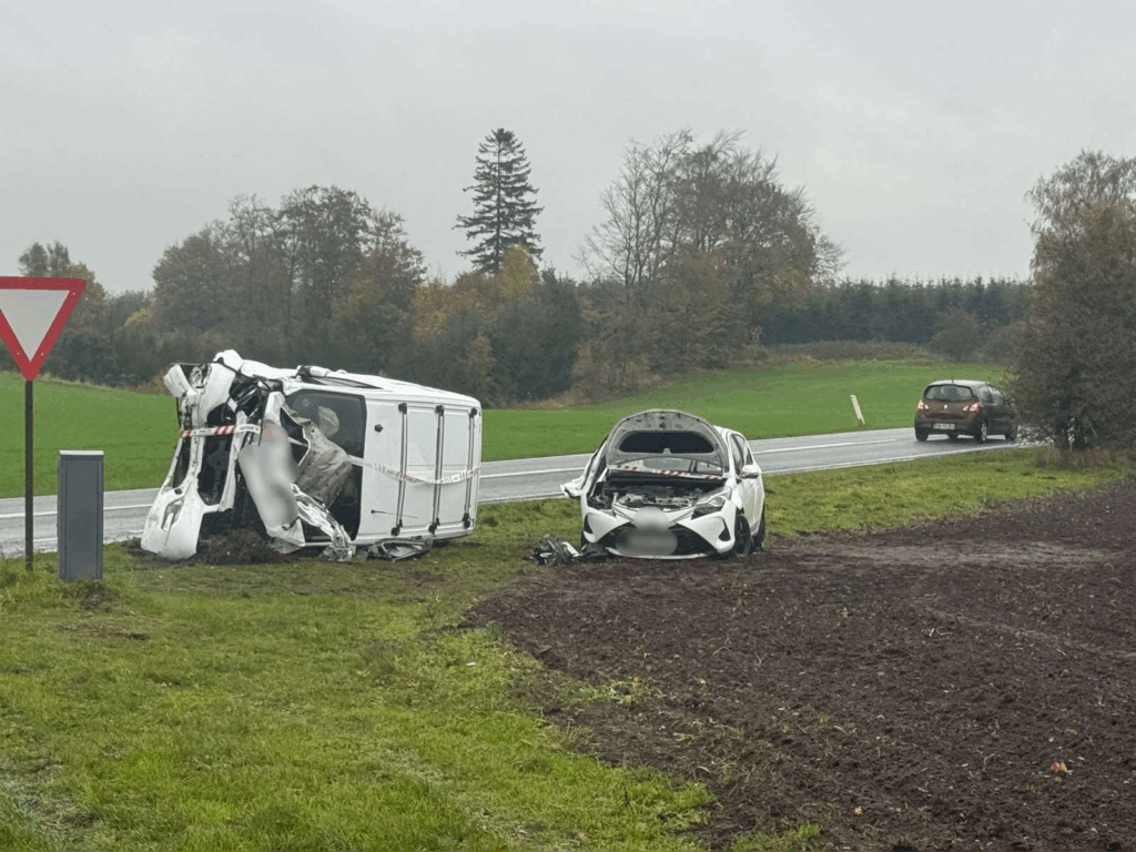 “Føreren af det ene køretøj er indlagt på sygehuset, og hans hustru, der sad i bilen, er desværre afgået ved døden,” siger vagtchef Rasmus Poulsen.