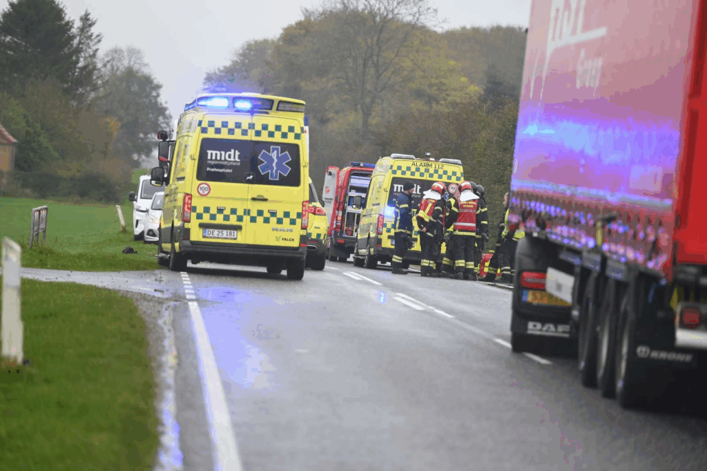 “Det skulle ligge vidnefast, at lastbilen holder ved krydset for at foretage et venstresving. Bilen kommer bagfra og kører udenom lastbilen, og her sker der et frontalt sammenstød,” siger vagtchef Rasmus Poulsen til Viborg Folkeblad.