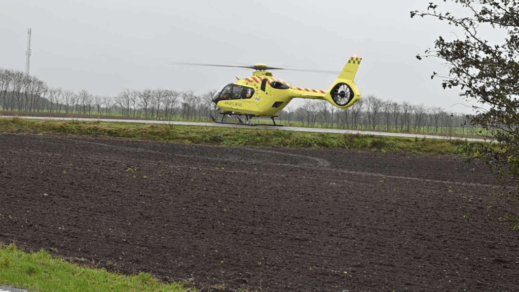 En lægehelikopter er desuden set lette fra ulykkesstedet.
