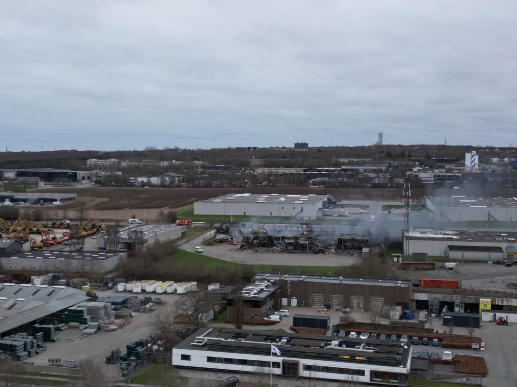 Billeder fra Jens Olsens Vej i Aarhus viser, at bygningen tilsyneladende er fuldstændig kollapset og brændt ned.