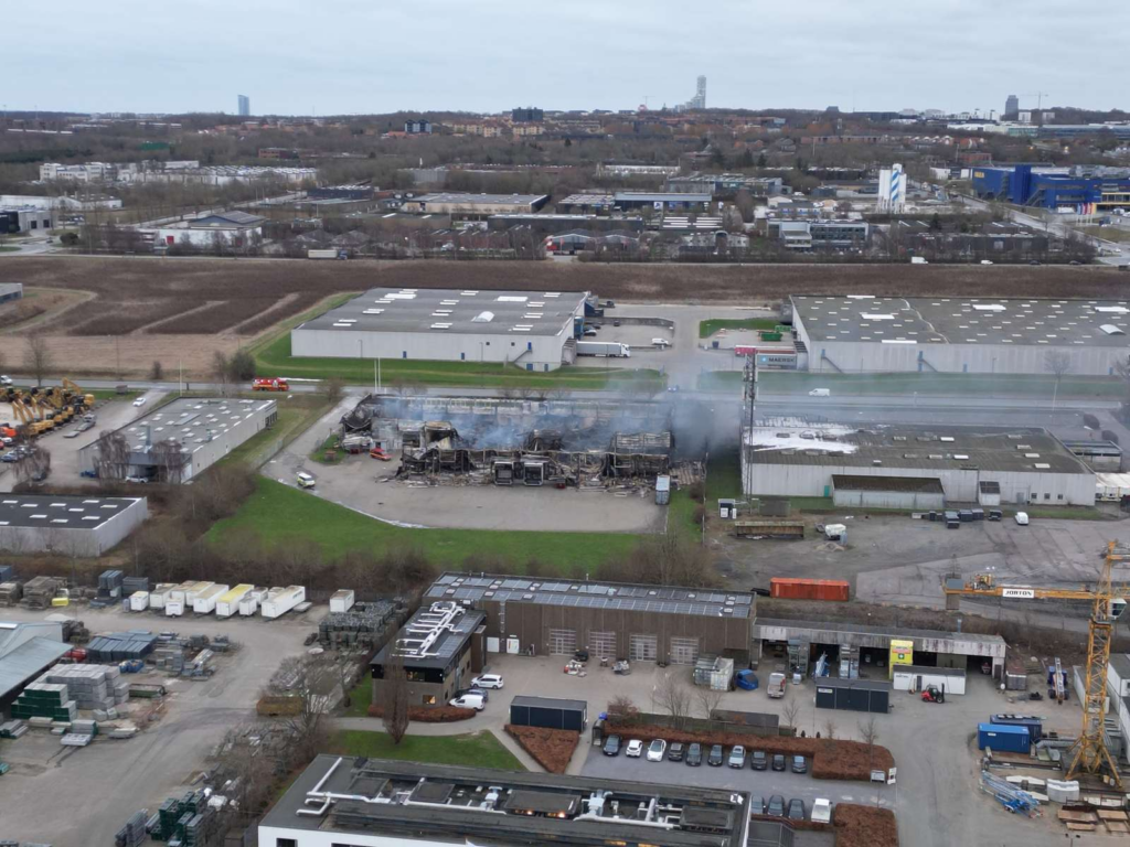 Branden har natten igennem derfor udviklet giftig røg, men der er ikke længere fare for røgen.