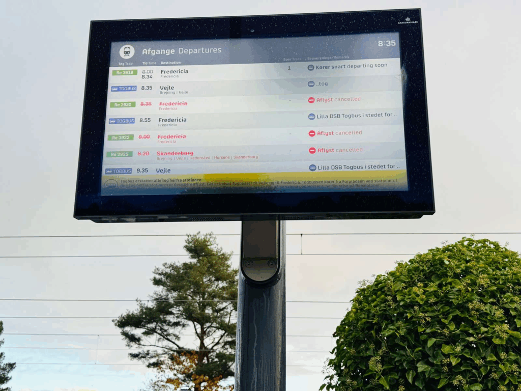 Passagerer i både nordgående og sydgående retning bliver derfor bedt om at orientere sig i DSB’s rejseapp eller på stationernes informationsskærme, da ændringer kan ske løbende.