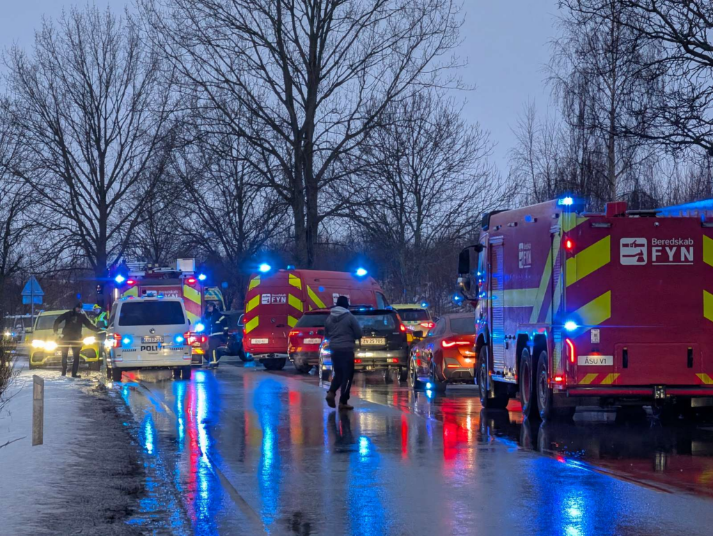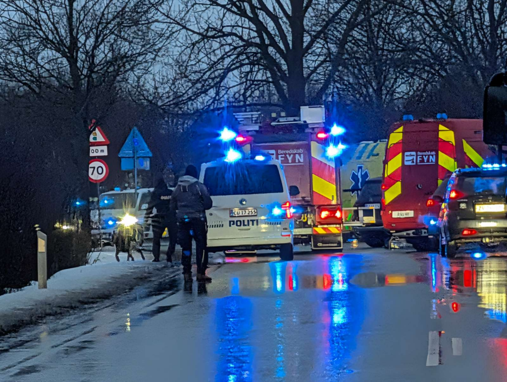 ‘Der er tale om solouheld med en personbil, der har ramt et træ. To tilskadekomne i køretøjet. Vi arbejder med en bilinspektør på stedet. De pårørende er i færd med at blive underrettet,’ oplyser Fyns Politi i den forbindelse.