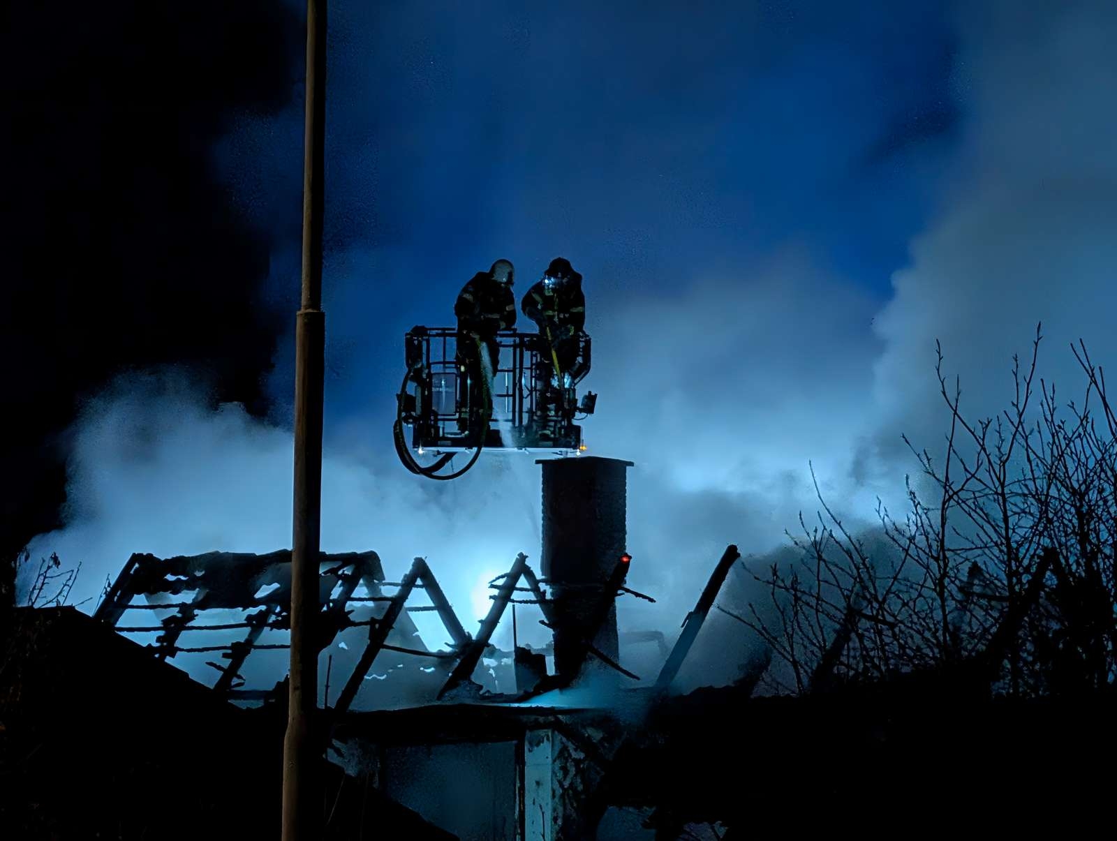 Ifølge den udsendte fra Presse-fotos.dk er beboerne hastet ud af deres bopæl i en sådan fart, at flere står i hjemmesko og underbukser med blot en jakke over sig.