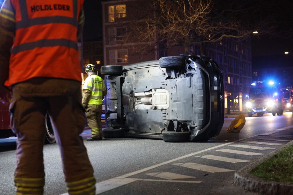 Søndag aften har en voldsom ulykke fundet sted på Amager, hvor en bil er forulykket og endt på siden.