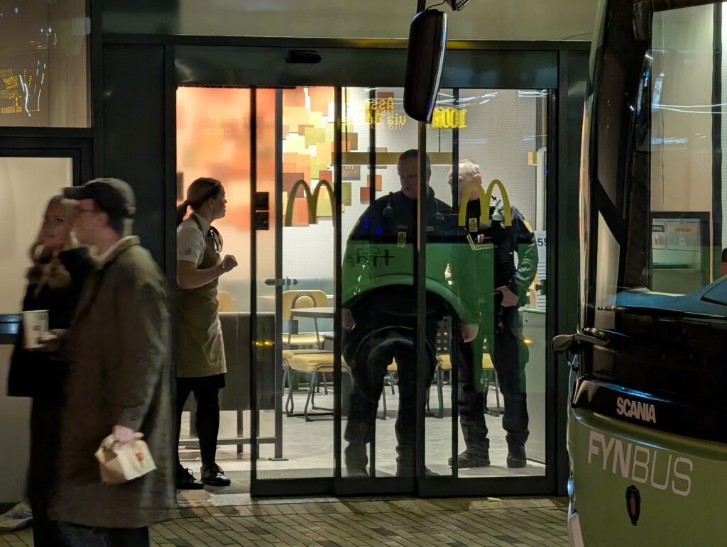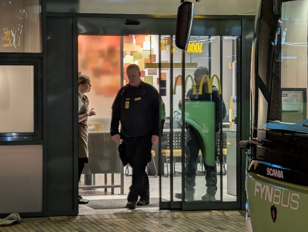 Politiet er talstærkt til stede ved denne McDonalds – se flere billeder nederst i artiklen.