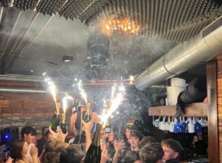 En foreløbig efterforskning peger på, at indendørs fyrværkeri – en form for stjernekastere eller fontæner sat på champagneflasker – kom for tæt på loftet.