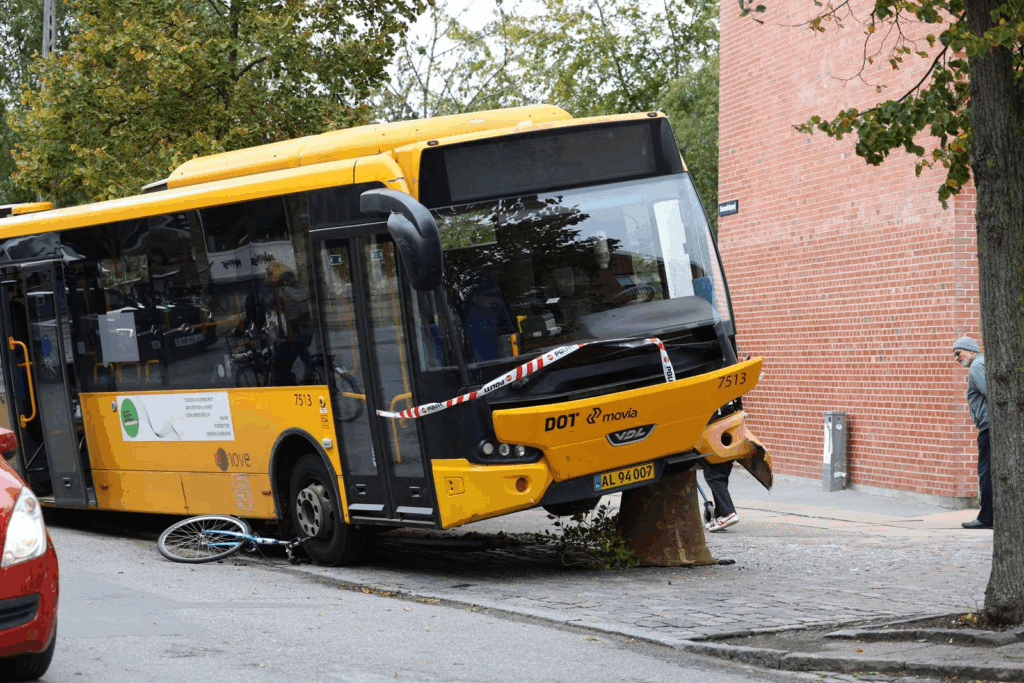 “Det har formentlig været en parkeret cykel, som bussen har påkørt. Vi har ingen tilskadekomst,” siger vagtchefen.