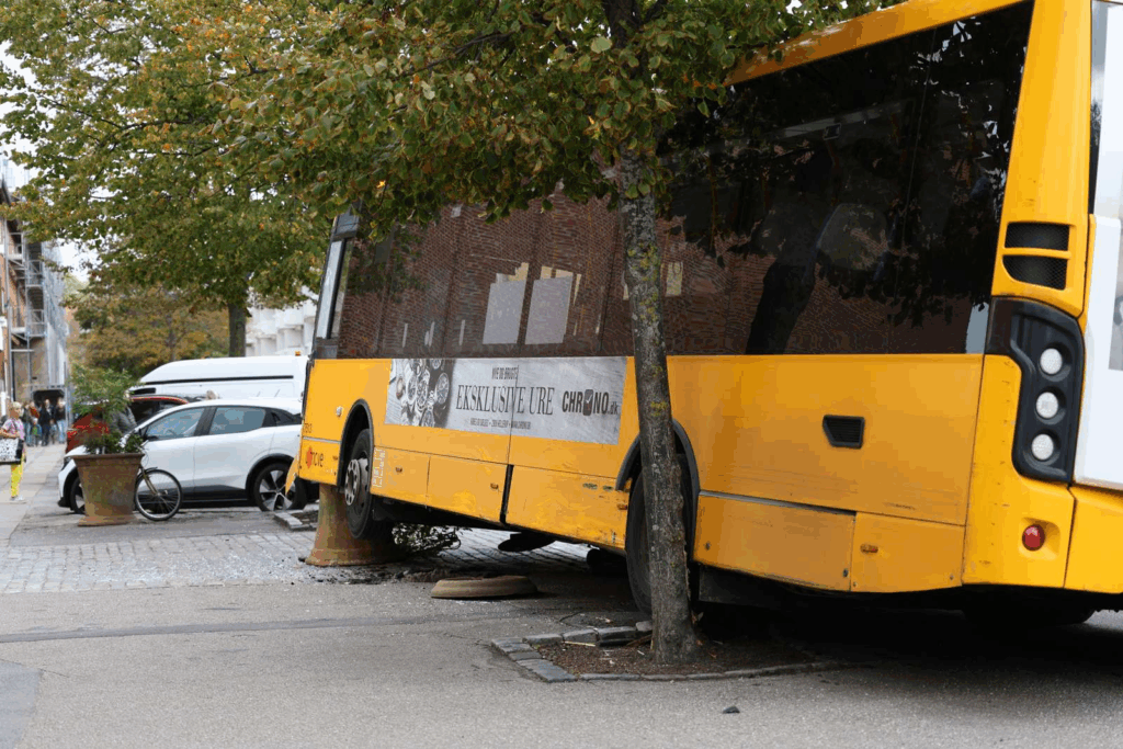 “Umiddelbart har det været en chauffør, som er kommet til at stille bussen i frigear – og så er den trillet afsted og er endt med at have påkørt et træ,” siger vagtchef Anders Frederiksen til Presse-fotos.dk og tilføjer: