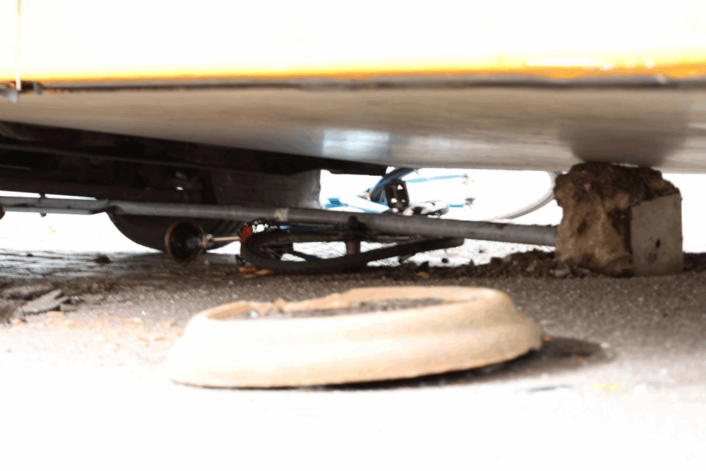Jeg har billeder fra stedet, der viser, at en barnecykel ligger under bussen?