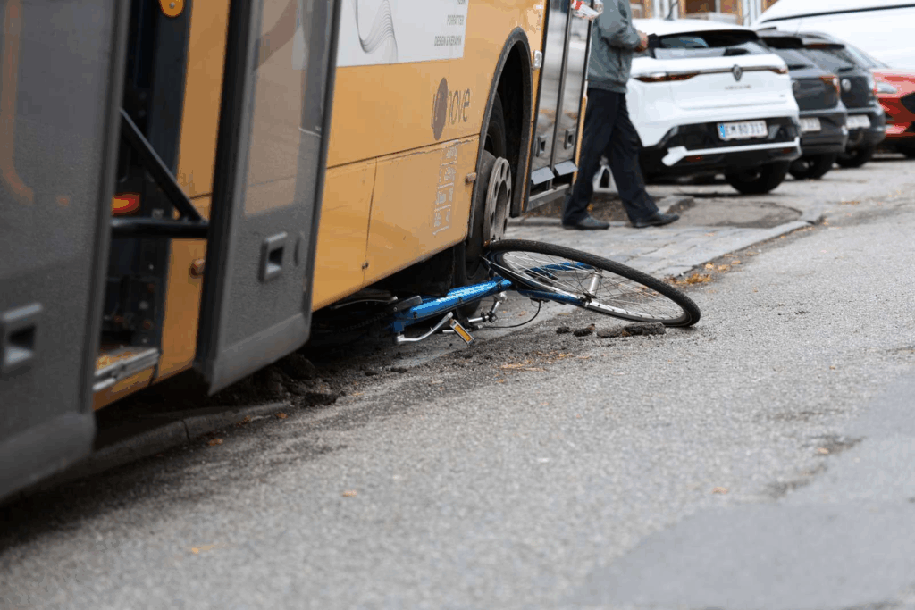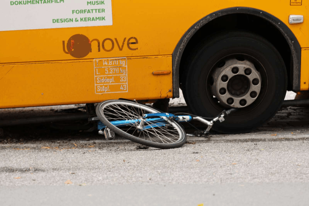 Det er umiddelbart uhyggelige scener, som møder borgere, der søndag eftermiddag passerer et færdselsuheld i København. En barnecykel ligger knust under en bus