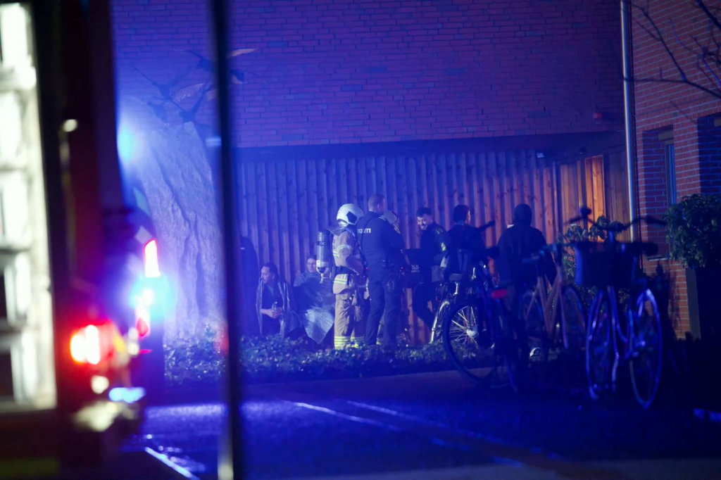 Flere beboere er blevet evakueret og står udenfor samlet i mindre grupper.