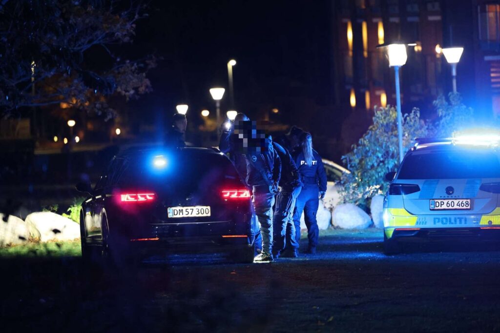 Billeder fra Sønderskovvej i Lystrup viser, at en person er blevet lagt i håndjern på stedet.