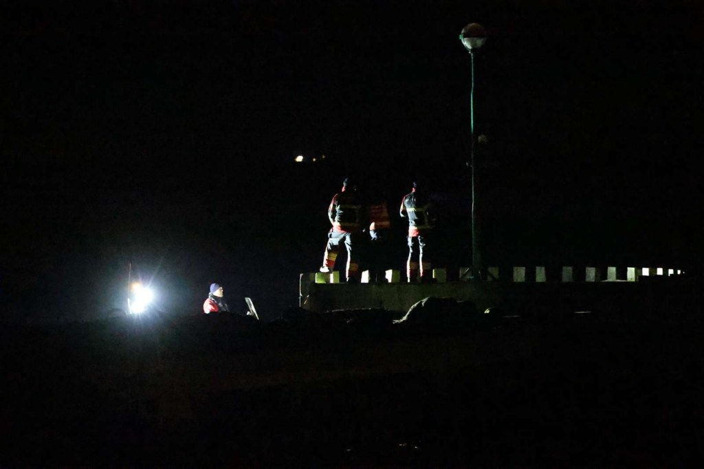 Ifølge Presse-fotos.dk’s udsendte ledte mandskabet i vandet. Billeder fra stedet viser blandt andet beredskabsfolkene lyse ned i det kolde vand.