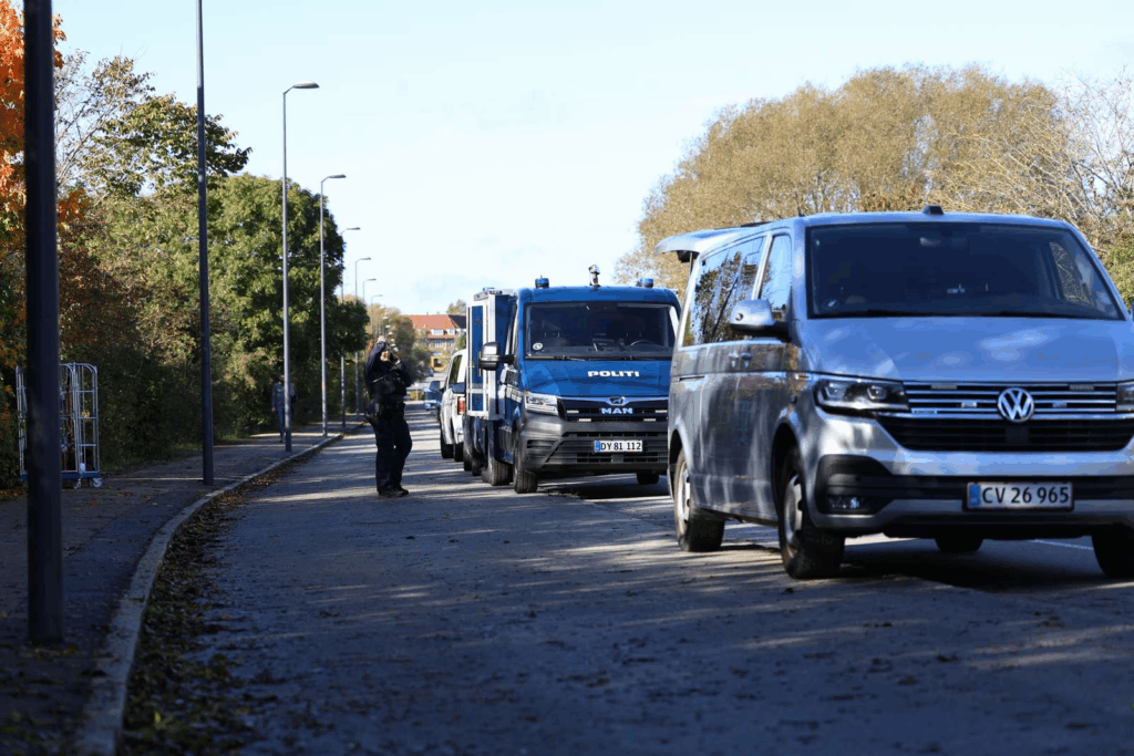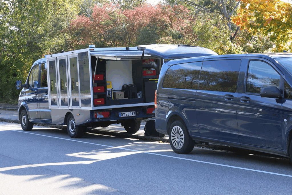 Billeder fra stedet viser, at både politibetjente og kriminalteknikere befinder sig i og omkring de afspærrede områder ved Grønnemose Alle i København.