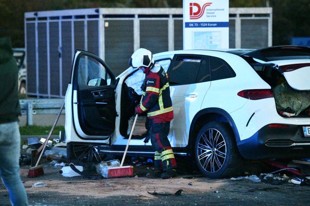 “En personbil med fire personer, to voksne og to børn, drejer af ved Q8-afkørslen ind til tankstationen. Der sker noget med føreren, der gør, at personbilen kører igennem tankstation, rammer en motorcykel, en benzinpumpe og kører ind i butiksfacaden, hvor bilen stopper,” siger han til Presse-fotos.dk.