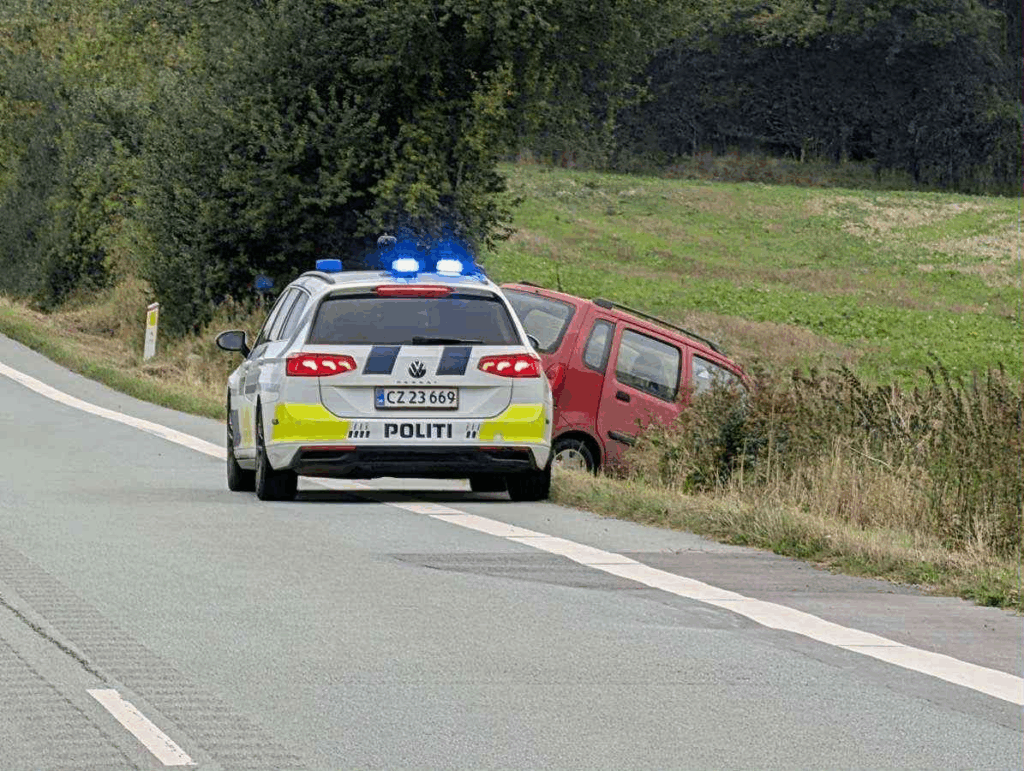 “Her anholdt vi føreren af bilen, da vi mistænker ham for spirituskørsel. Han skal med på sygehuset og have taget en blodprøve, og derefter vil han blive løsladt,” fortæller vagtchefen.