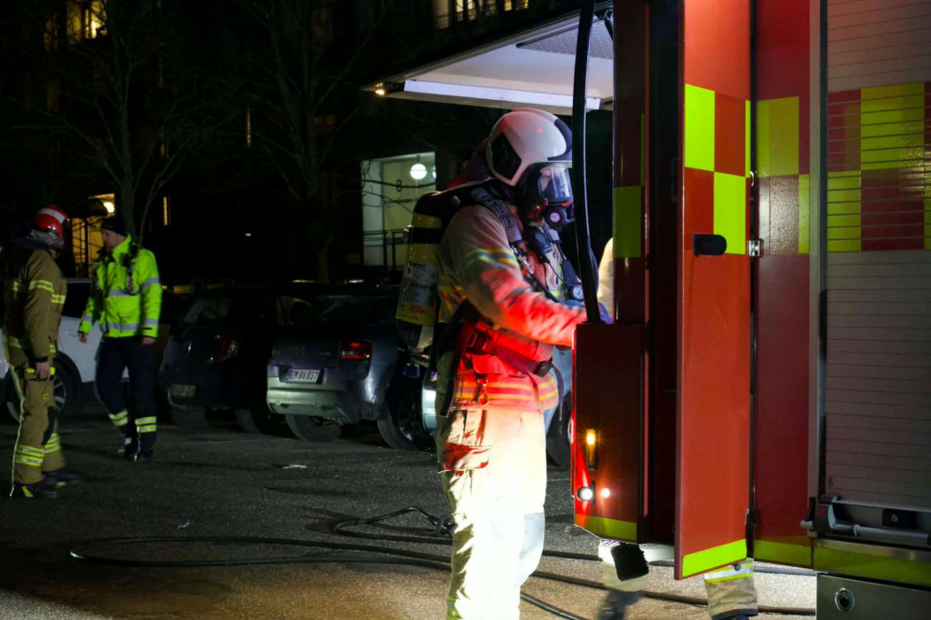 Billeder fra Gudrunsvej i Brabrand, hvor branden pågår, viser, at flere af de tilkaldte brandfolk har iført sig røgdykkerapparater i forbindelse med brandbekæmpelsen.