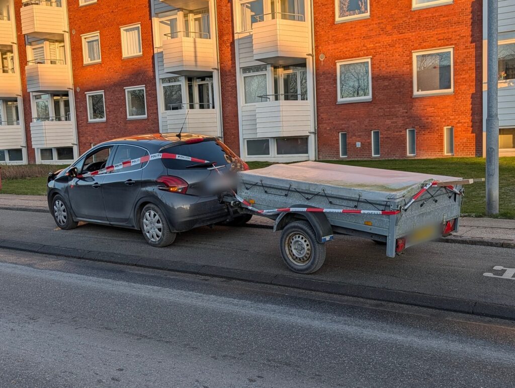Tirsdag eftermiddag er en bil med en trailer forulykket.