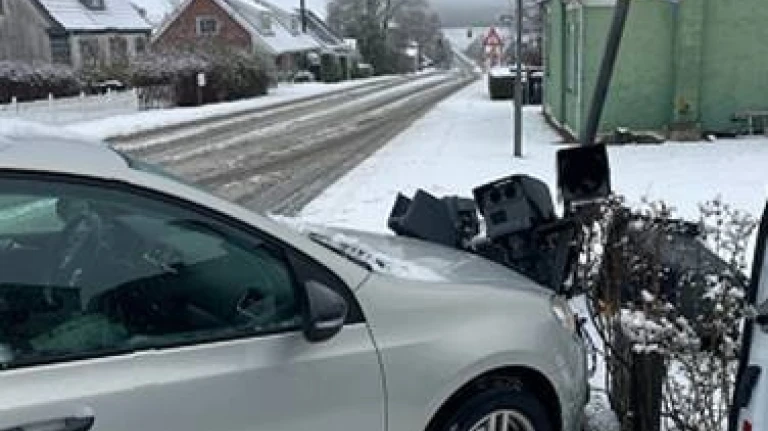 I et forsøg på at undgå at blive blitzet kvitterede bilisten med et tryk på bremsen. Men på den sne- og isglatte vej kunne sommerdækkene ikke stille meget op.