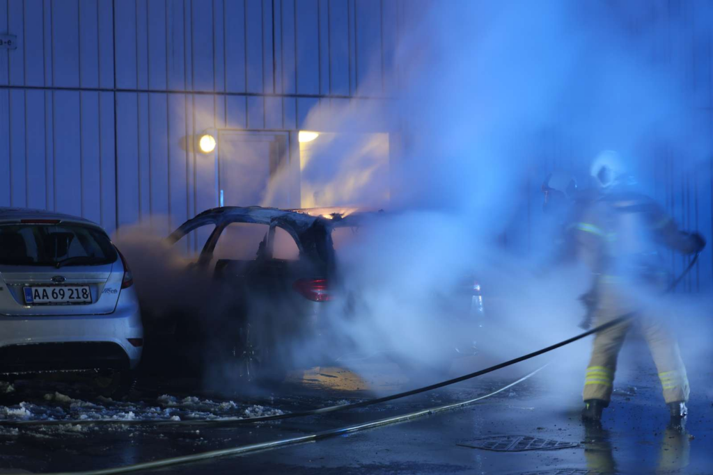 Ifølge oplysninger fra Presse-fotos.dks fotograf på stedet er der tale om en Mercedes, som brændte kraftigt. Røgen lå tungt over området, og brandvæsenet indsatte blandt andet en tankvogn i slukningsarbejdet.