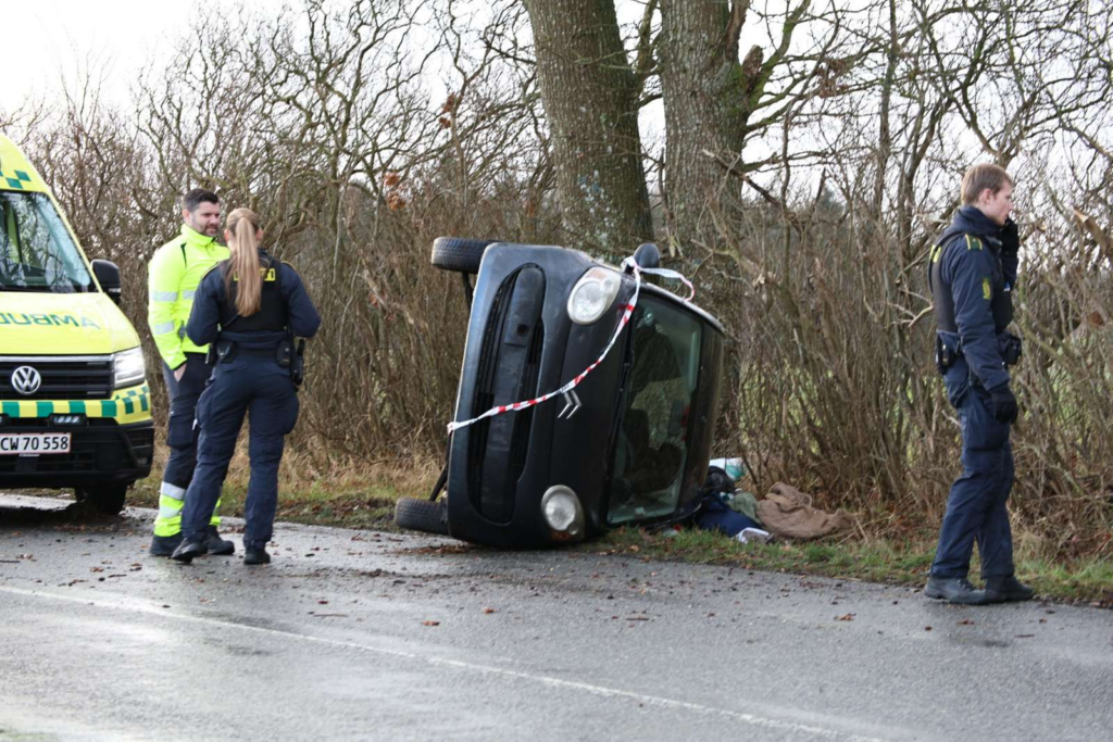 OPDATERING: Kvinde og barn kørt på hospitalet: Bil vælter i høj fart