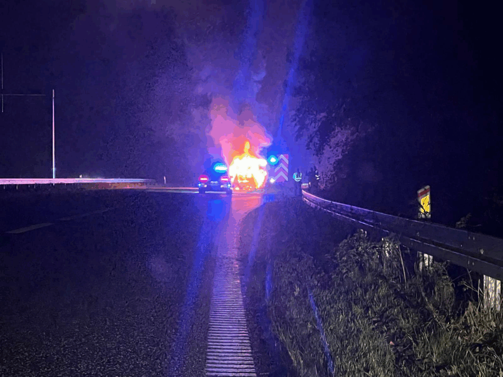 Ifølge Vejdirektoratet kan det brændende køretøj passeres med forsigtighed.