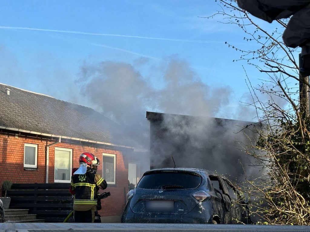 Torsdag aften er der gået ild i en elbil, som har stået ved husets garage.