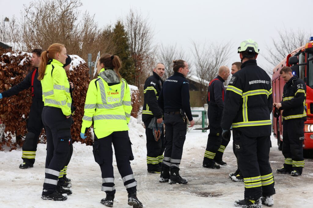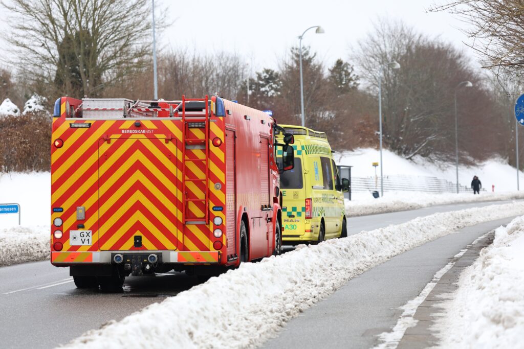 Billeder fra Presse-fotos.dks udsendte viser flere ambulancereddere og brandfolk på stedet. Angiveligt skulle en person være blevet kørt væk ambulance.