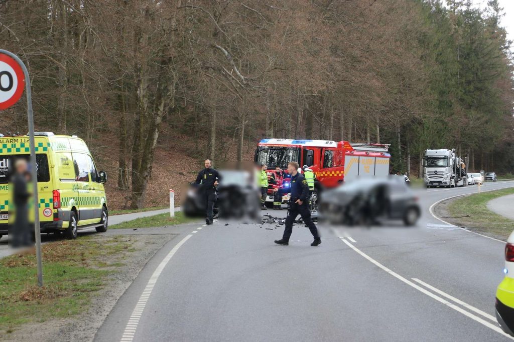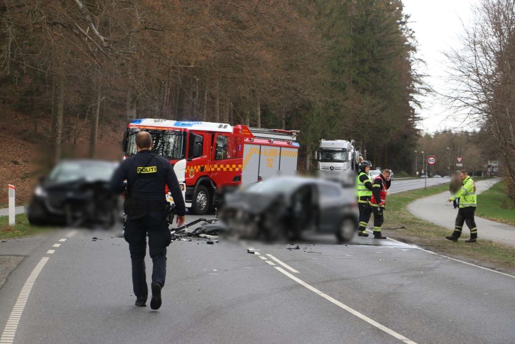 Brandvæsen, politi og redningsmandskab er fredag eftermiddag hastet mod en strækning, efter to biler er kollideret.