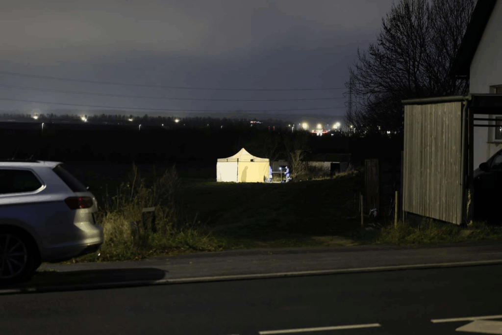 “Alle, der kommer ud af huset, ser meget rystede ud. Teknikerne forsøger at skærme dem med deres paraplyer. Nogle børn er også lige blevet flyttet herfra med politieskorte, og længere nede ad marken er et stort telt sat op – der holder en ligvogn. Det kunne godt tyde på, at en har mistet livet.”
