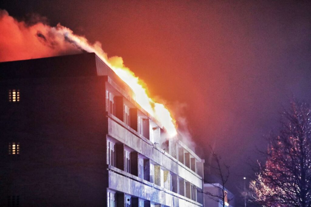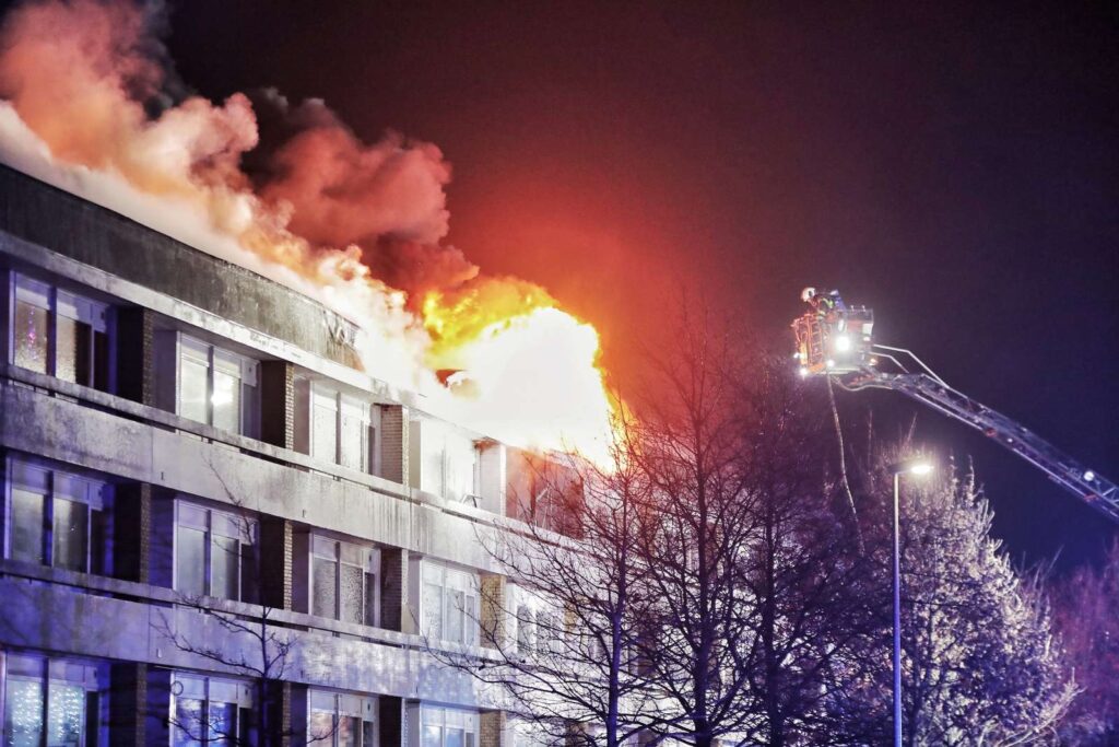 Branden bredte sig til tagkonstruktionen, og det medførte altså, at politiet måtte evakuere fem opgange.