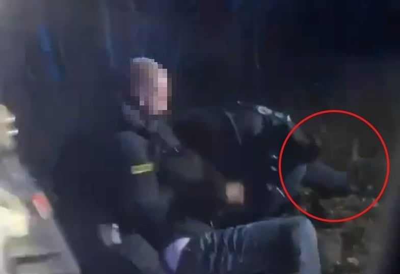 Her ses betjentene i færd med at anholde den 29-årige, hvor knæspark blev heftigt anvendtse video derfra her