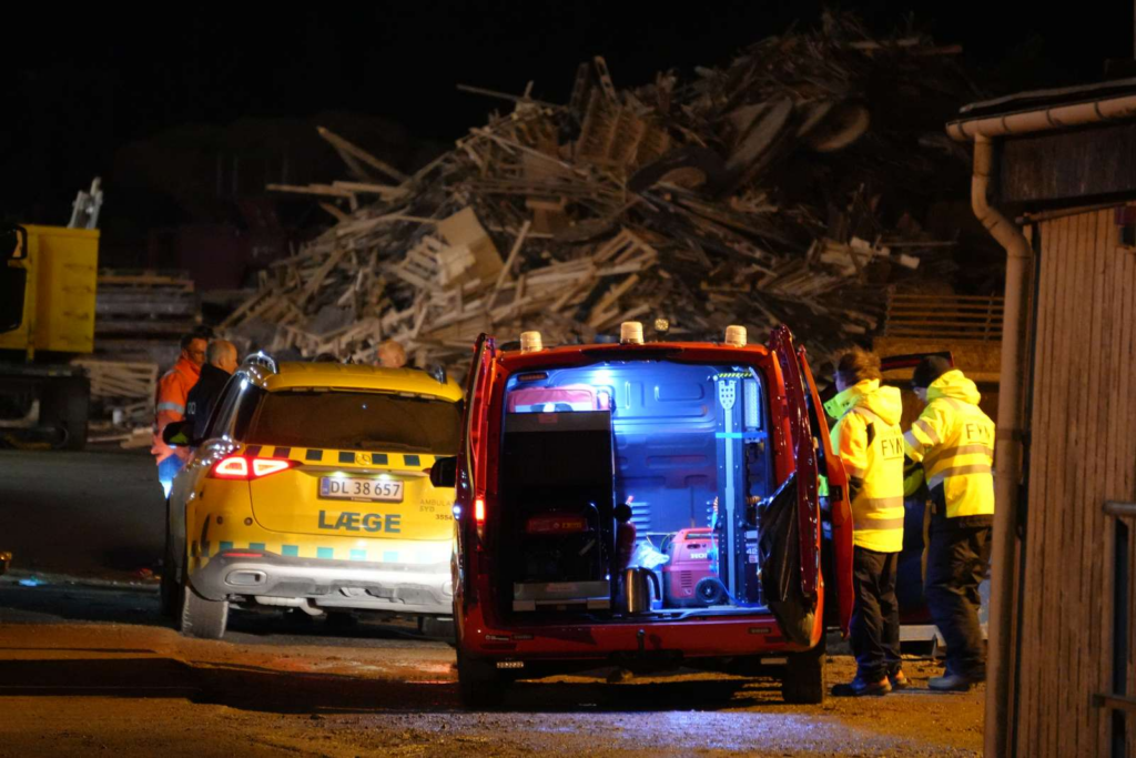 En akutlæge stod også klar, mens man rykkede ind i affaldet på pladsen. Politiet var til stede ved affaldsdepotet i flere timer.