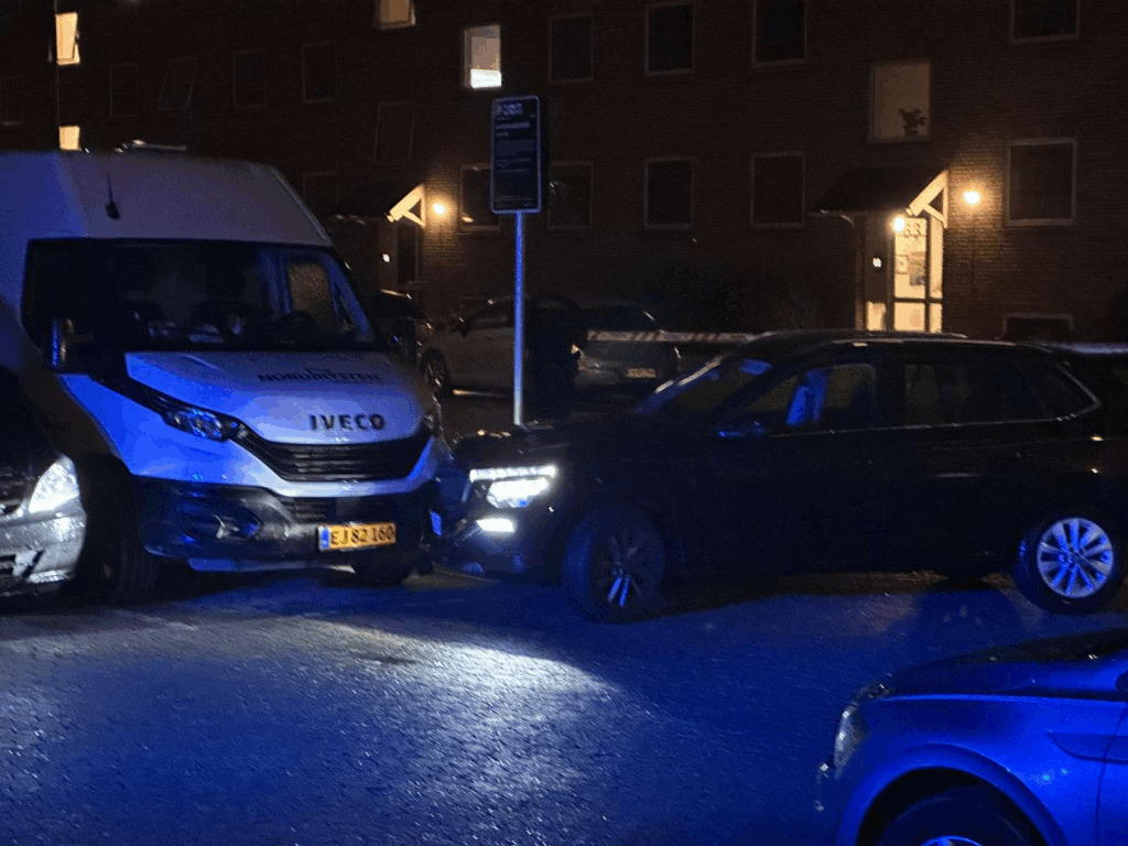 Der er tale om et solouheld, hvor han er kørt ind i en parkeret bil på en parkeringsplads.