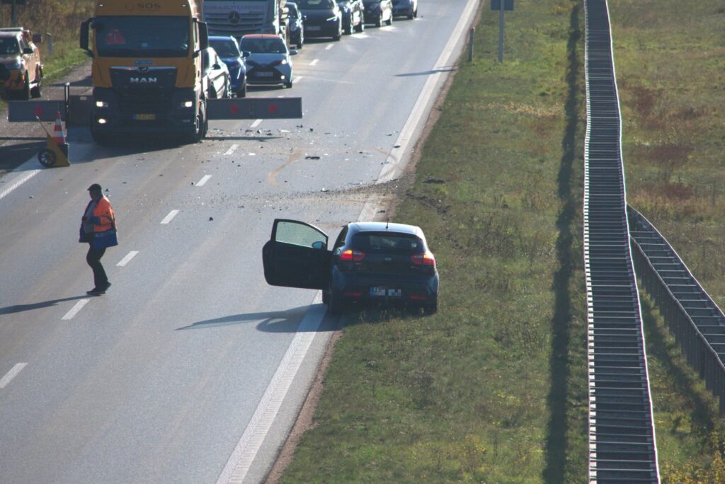 En bil har mandag formiddag påkørt en tavlevogn på Sønderjyske Motorvej ved sammenfletningen med Sønderborgmotorvejen, oplyser politiet.