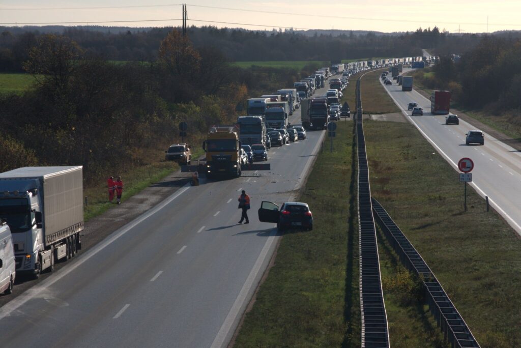 Vejdirektoratet oplyser, at Sønderjyske Motorvej er spærret efter frakørsel 72 til Aabenraa S.