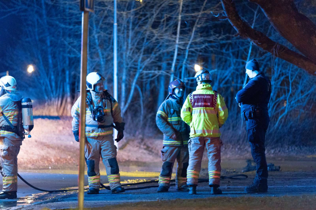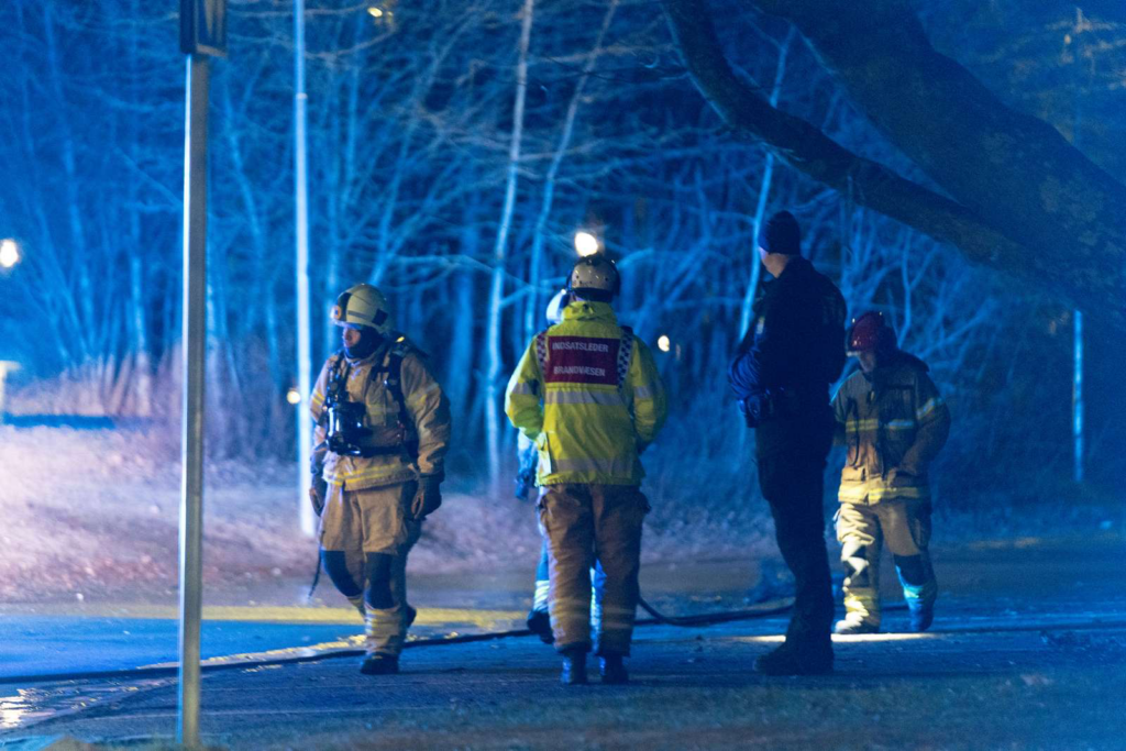 Billeder fra stedet viser, at flere brandfolk arbejder på at få kontrol over branden.