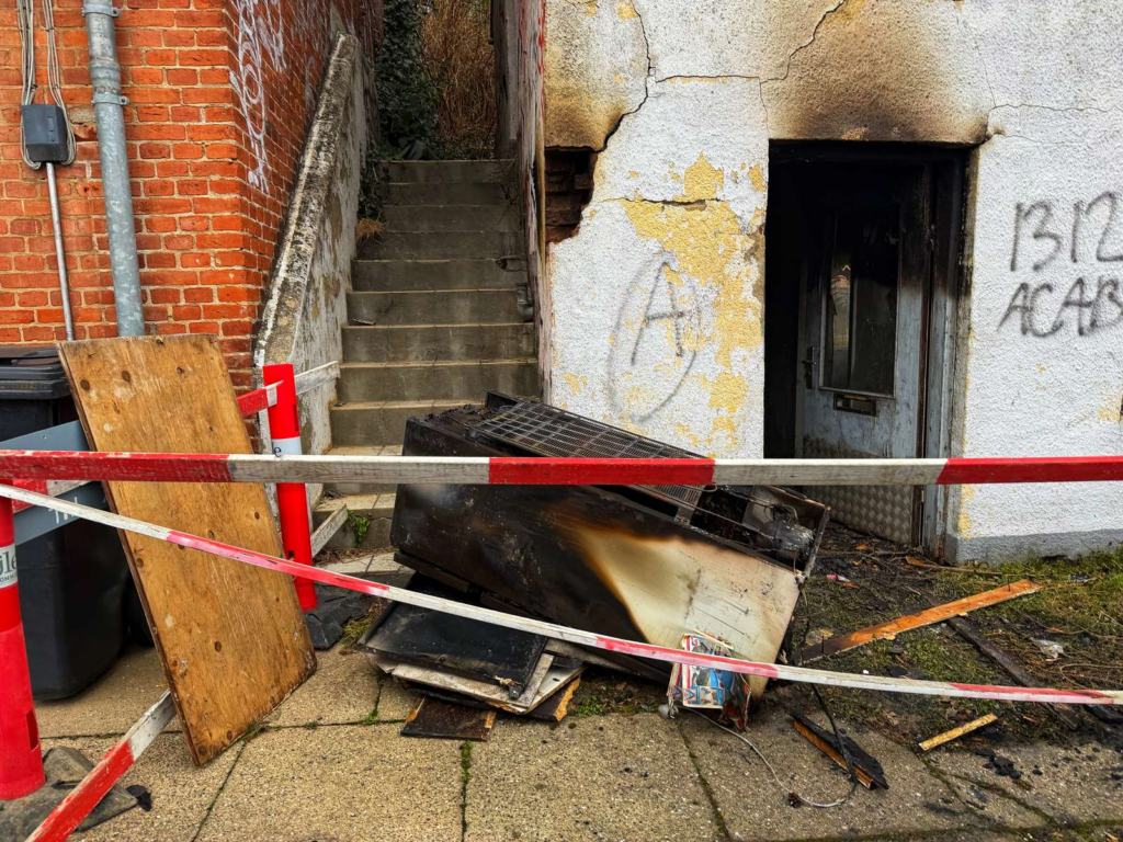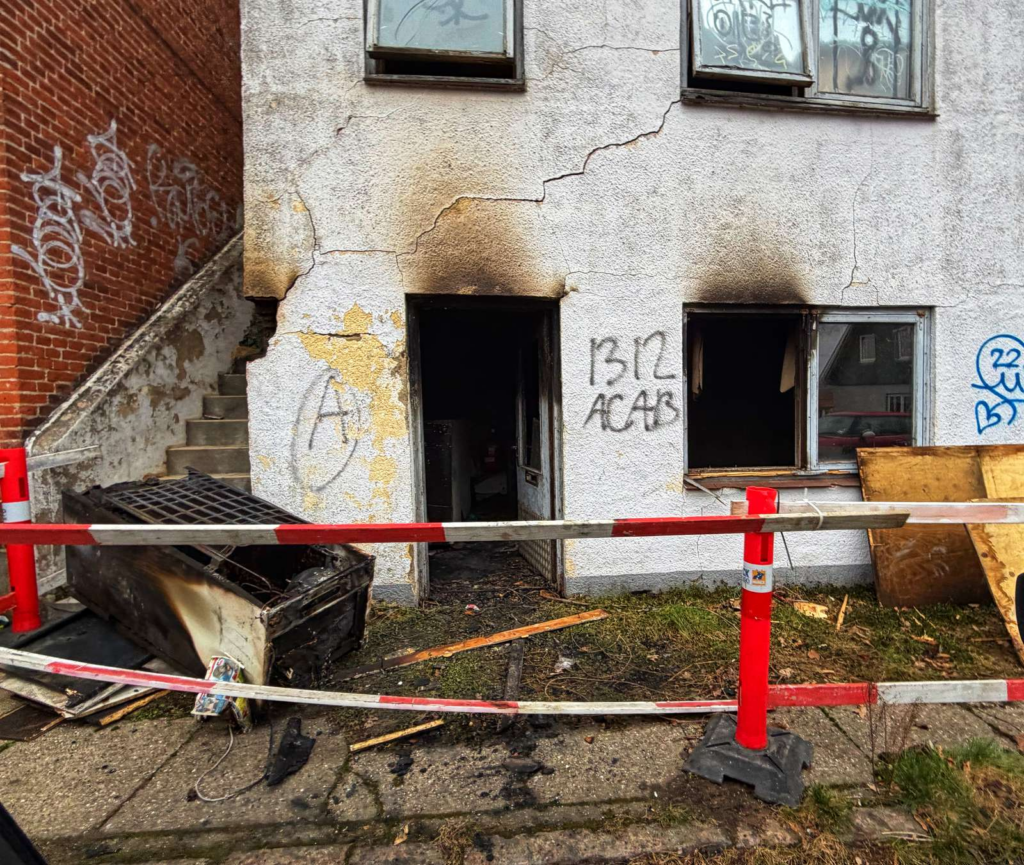 Lørdag omkring klokken 11.50 ses tydelige brandskader på ejendommen.
