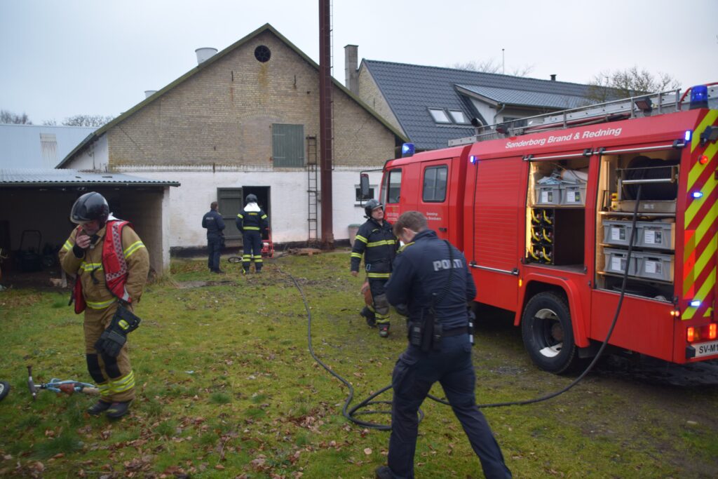 Brandvæsen og politi rykkede søndag ud til meldinger om en brand i en gård.