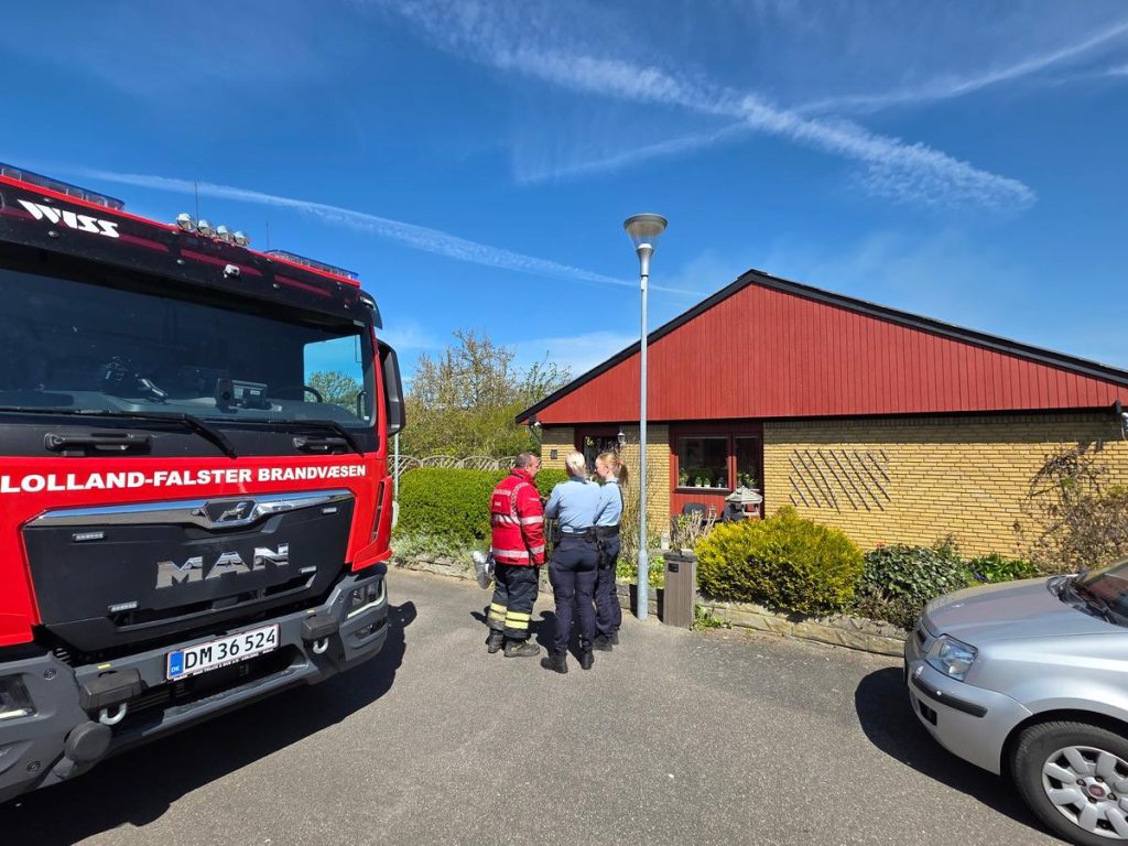 Branden er i gang på Strandagervej 46 i Rødbyhavn på Lolland.