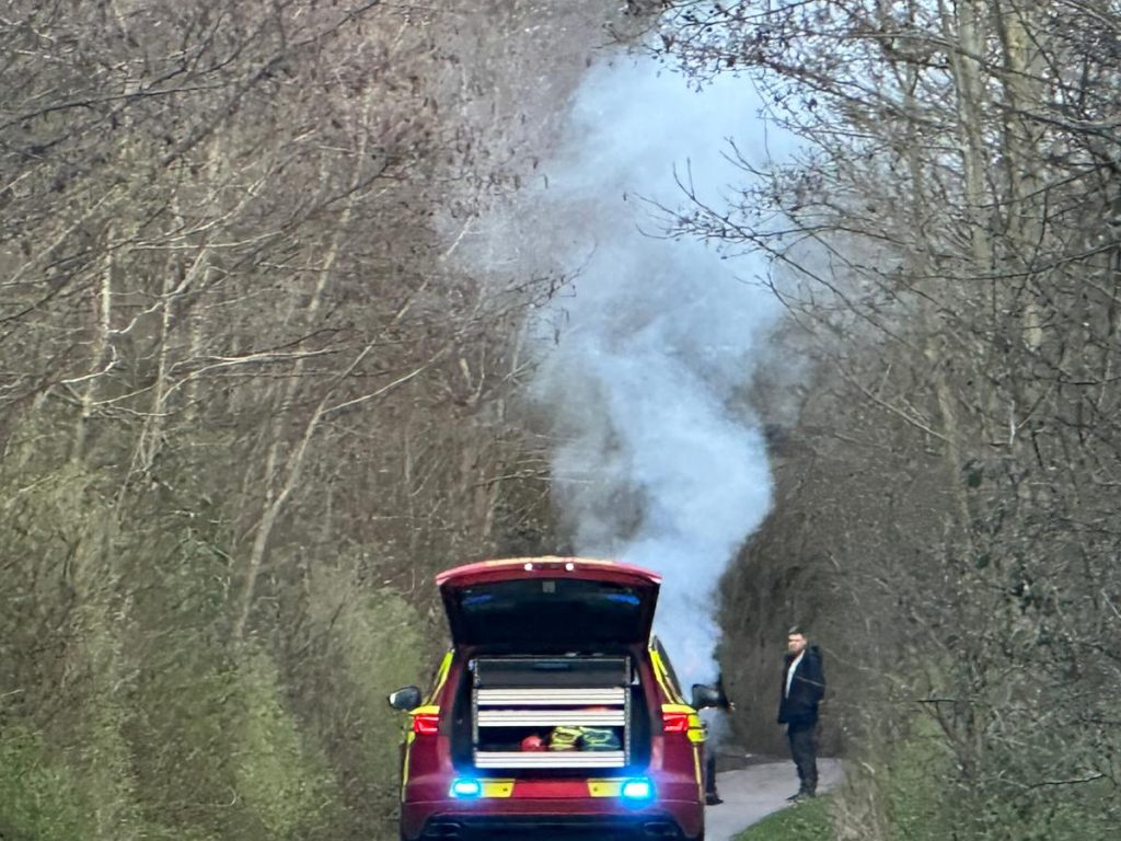 Bandvæsen måtte haste ud til melding om brand på en landevej.