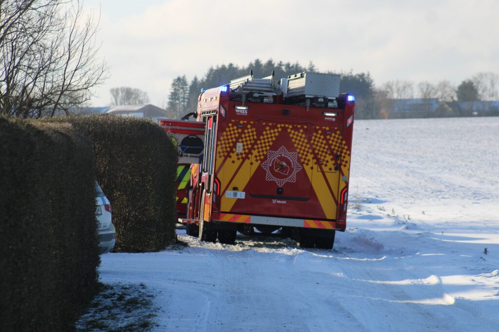 Brandvæsenet undersøger melding om brand på gård